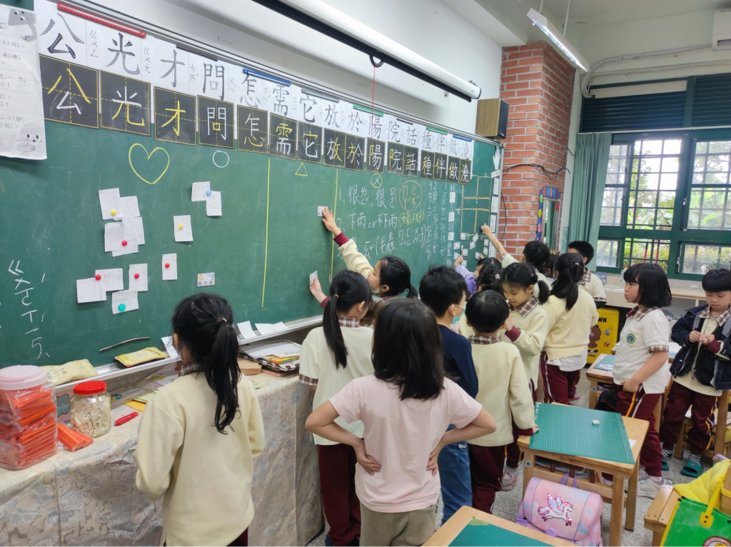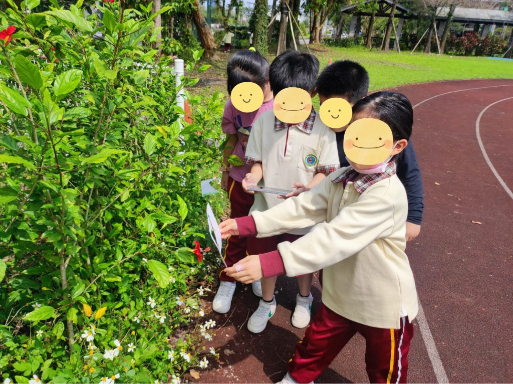 孩子們發現原來杜鵑花開了、田裡和樹上長出了嫩芽、草叢裡開出了小黃花、天氣變熱了、田裡出現了秧苗、小動物們都出來了….他們一位拿著相框,另一位拿著手機拍照,紀錄下這美麗的一刻。