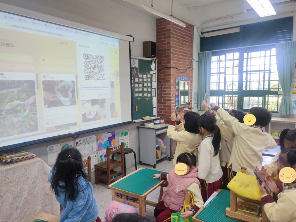 回到教室後,學習用手機掃QR code,把圖片上傳到padlet,再共同欣賞大家找到的春天。