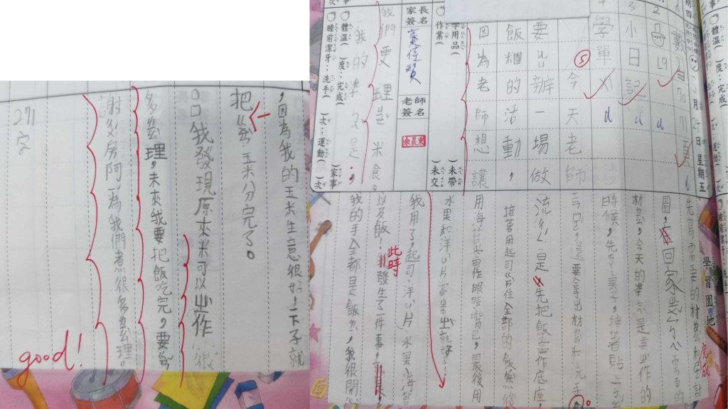 我們一起跟著行政老師參觀學校的資源回收室,透過五感觀察回收室,並寫下想要詢問的問題,再訪問負責管理的行政老師,孩子們透過老師的回應,了解學校是如何分類垃圾、分類的原因及理由、最常見的困擾,以及希望大家能配合的事項…等,最後我們將這一節課的所見所聞寫成了小日記。
