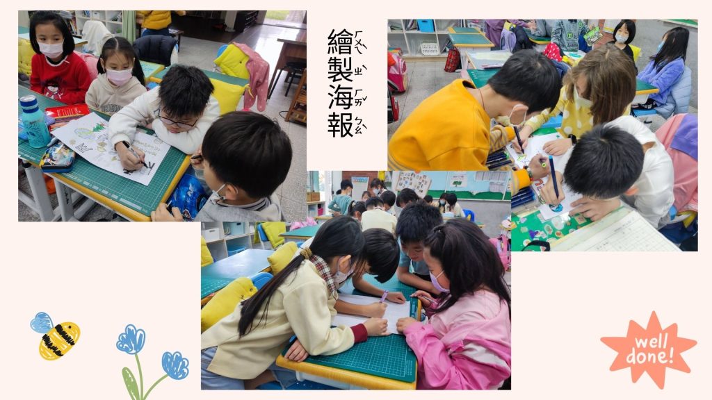 繪製海報之前,老師先詢問孩子海報需要有哪些條件?(字要大!)