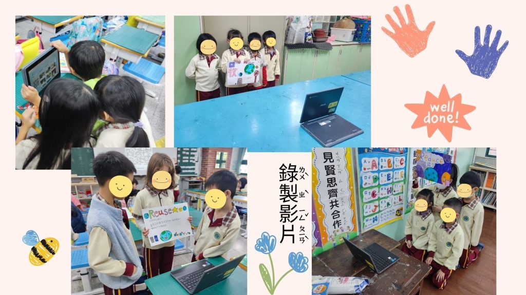 於是最終決定,班上六個小組組各自認領3R(Reuse、Rucycle、Ruduce)中的一個概念,以繪製海報,再加上口語宣傳,最後錄製成影片,放在班級聯絡網(Padlet)。