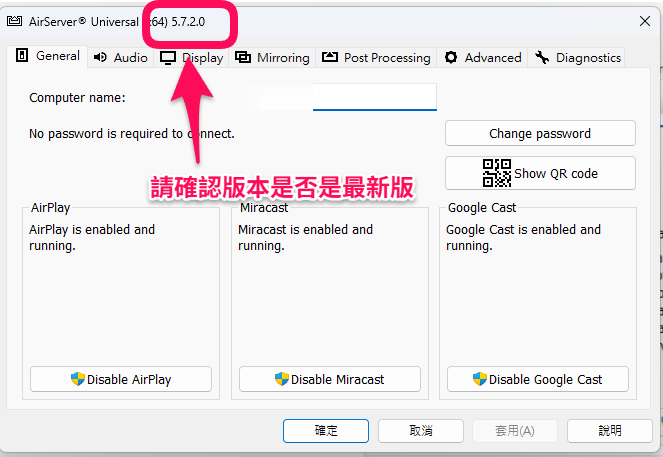 三、更新完成後,點選Settings,查看最上方版本是否為5.7.2,如為5.7.2代表更新成功,即可正常投影
